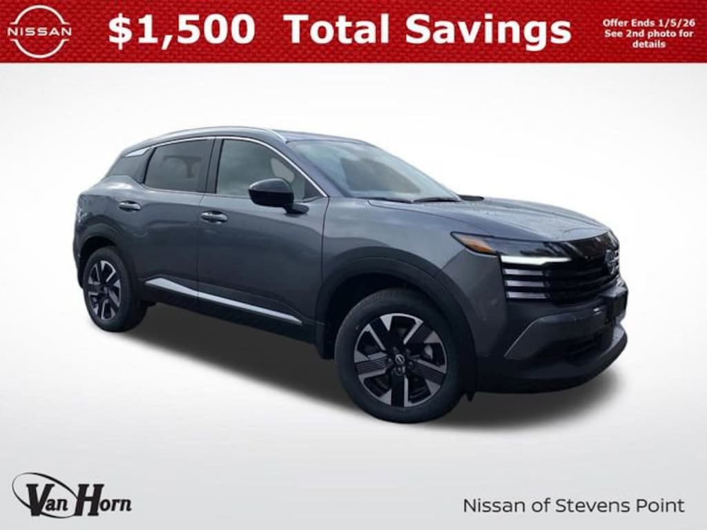 This Kicks includes full factory warranty. Please call to confirm availability, features and specifications! Price includes all available rebates and current incentives for which everyone qualifies. Price does not include sales tax, title, registration, dealer service fee, finance charges, and any other fee required by law. See Dealer For Details. Van Horn is an Employee Owned Automotive Group with ties to all of the Communities we serve. Price includes: $1000 - Nissan Customer Cash. Exp. 02/02/2026 $500 - Nissan MWR MY26 Kicks Bonus Cash - January . Exp. 02/02/2026