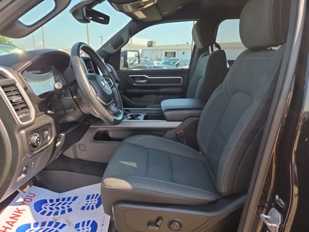 Clean CARFAX. CARFAX One-Owner. 4WD, LOCAL OWNED, NEW TIRES, Navigation, Heated Front Seats, Heated Steering Wheel, Remote Start, Front and Rear Parking Sensors, Rearview Camera, Apple CarPlay & Android Auto, Bluetooth, Power Sliding Rear Window, Class IV Tow Hitch, Trailer Brake Control, Class V Receiver Hitch, 33 Gallon Fuel Tank, 5 Ft Box, 3.21 Rear Axle Ratio, 8.4" Touchscreen Display, 9 Amplified Speakers w/Subwoofer, Air Conditioning ATC w/Dual Zone Control, AM/FM radio, Anti-Spin Differential Rear Axle, Big Horn Level 2 Equipment Group (DISC), Black Headlamp Bezels, Cold Weather Group (DISC), Deluxe Cloth Bucket Seats, Front Fog Lamps, Night Edition, Power 8-Way Driver Seat, Power Adjustable Pedals, Power-Folding Mirrors, Protection Group, Quick Order Package 28Z Big Horn (DISC), SiriusXM Satellite Radio, Trailer Light Check, Trailer Reverse Steering Control, Trailer Tire Pressure Monitoring System, Trailer Tow Group, Trailer Tow Mirrors, Wheels: 20" x 9.0" Premium Paint/Polished.